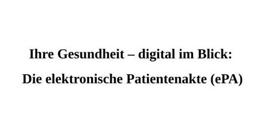 - Die elektronische Patientenakte (ePA)Was ist die ePA? Die elektronische Patientenakte ist Ihr persönliches, digitales Gesundheitsdossier. Dort können medizinische Informationen wie Befunde, Diagnosen, Impfungen oder Medikationspläne sicher gespeichert werden – übersichtlich an einem Ort, jederzeit abrufbar. Ihre Vorteile auf einen Blick: ✅ Ihre Gesundheitsdaten jederzeit verfügbar ✅ Bessere Abstimmung zwischen behandelnden Ärzten ✅ Vermeidung… Die elektronische Patientenakte (ePA) weiterlesen